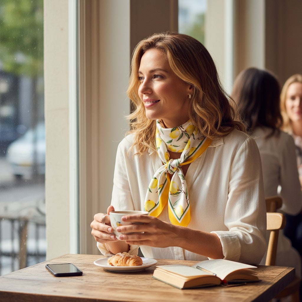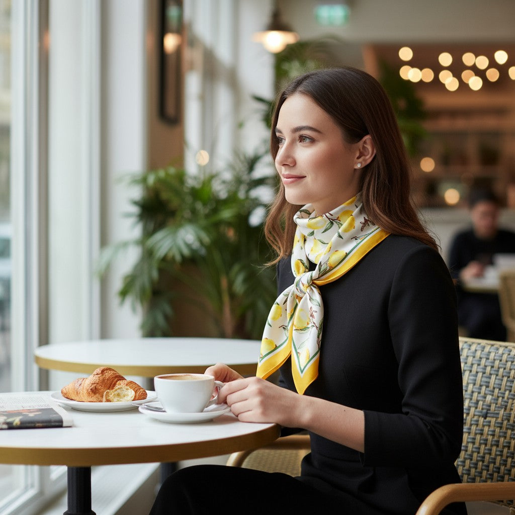 Amalfi Lemon Silk Scarf – LUNÉA Atelier Collection 🍋