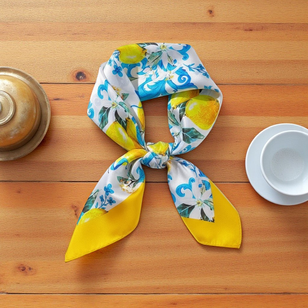Capri Bloom Silk Scarf – LUNÉA Atelier Collection 🍋